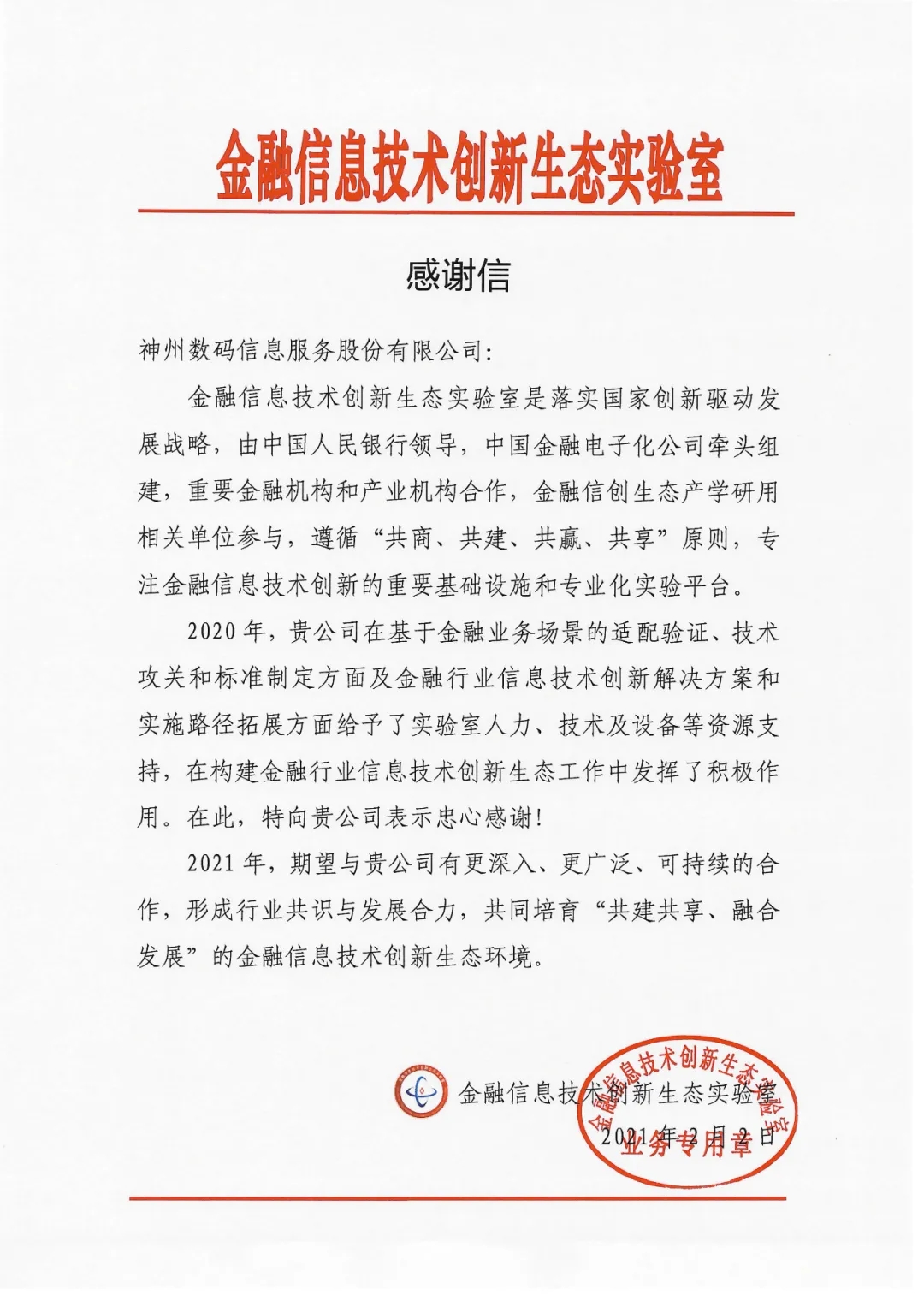 感谢认可!愿携手并进,共同培育“共建共享、融合发展”的金融信创生态环境!